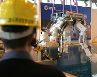 Paris, France (ESA) Jul 05, 2007 Many of the best-loved science fiction movies show intelligent robotic servants working alongside their masters. Fiction is rapidly becoming fact as European engineers develop increasingly sophisticated machines that can operate in space. One of these, known as Eurobot, has just completed trials in the giant pool at the European Astronaut Centre. Eurobot has been under development since 2003, with the intention that the multi-jointed, three-armed assistant will eventually handle some of the more mundane tasks currently undertaken by astronauts. One possible use will be in helping astronauts during extravehicular activity (EVA), more commonly known as spacewalks, but the robot may also be an indispensable helper during human expeditions to the Moon or Mars. In the hostile conditions of space, the tireless Eurobot will save a great deal of time and effort by taking over various routine tasks. For example, the astronauts' flexible friend will be able to find its way to a work site on the International Space Station (ISS), perform a close-up inspection and carry out any initial preparatory work, such as the transfer of tools and equipment. Remotely controlled by an operator inside the ISS, Eurobot will be able to multi-task, providing additional hands and eyes for the spacewalkers. Once the astronauts are safely inside the Station, Eurobot will clear away the tools and equipment. "It could be a most useful aid," said Gianfranco Visentin, head of ESA's Automation and Robotics section. "There is a shortage of crew time during all missions, so anything that improves the use of astronaut time is very desirable." Former ESA astronaut Claude Nicollier, an expert in both EVAs and robotics, shares this point of view, "The support to EVAs is seen mainly in tasks such as worksite preparation, post-EVA cleanup and inspection." The version of Eurobot used in this week's exercises is an early prototype called the Weightless Environmental Test (WET) Model, which has been developed for operation in a 'Neutral Buoyancy Facility' - a water tank where the microgravity conditions found in space can be simulated. Developed for ESA by a consortium led by Thales Alenia Space, the WET Model is similar in size and configuration of the planned Flight Model. It consists of a central 'body' structure with three identical arms, each with 7 joints. Although the arms' length and strength are similar to those of a human, they are much more manoeuvrable and versatile. In addition, each arm is equipped with a camera and an end-effector which acts as a hand. The WET model has only one type of hand, which is capable of grasping EVA handrails. In contrast, the real Eurobot will have a set of 3 or 4 interchangeable hands. A head camera on a pan and tilt mechanism provides a global monitoring view of the worksite. In the latest trials, the WET Model was used to verify the operational concept for Eurobot. During tests of its ability to move and manipulate objects, the project team gained hands-on experience of the robot's capabilities, trying out multi-arm control and coordination, along with visual recognition of obscured targets. Eurobot was joined in the EAC pool by ESA astronaut Jean-Fran�ois Clervoy to demonstrate the interaction between astronaut and robot. The trials at the European Astronaut Centre (EAC), in Cologne, Germany, conclude the initial verification phase of the Eurobot Wet Model programme, following on from previous preliminary dry and wet tests in Italy. "The tests went very well", said Philippe Schoonejans, ESA's Eurobot Project Manager. "Not only has it been demonstrated that Eurobot can walk around an orbital station autonomously and safely, using no more than the existing EVA handrails, it is also becoming clear that Eurobot can really help the astronauts. And in the next phase we also plan to demonstrate its use in on a planetary surface, as part of the Agency's exploration programme." While the testing of the WET model makes it possible to study the operational aspects of Eurobot, ESA has undertaken a comprehensive programme to further its technological development. This includes engineering models of the robot arms (called DexArm) and tool exchange device (CTED); the computer vision technology that allows Eurobot to identify and grasp objects (VIMANCO); the central brain that allows coordination of the robot arms' motion (CONTEXT); a sophisticated human-machine interface that allows tele-operation of the DexArm (Exoskeleton); and a control station that is used to program and control the Eurobot (A-DREAMS). All of these are being integrated in the Eurobot test bed located at ESA's Space Research and Technology Centre (ESTEC) in Noordwijk, the Netherlands. Community Email This Article Comment On This Article Related Links Eurobot Testbed All about the robots on Earth and beyond!