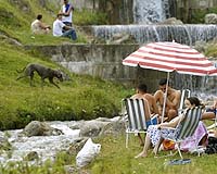 Bulgaria swelters through record-breaking heatwave The mercury is expected to keep climbing over the next two days, the institute added. Veliko Tarnovo, in central Bulgaria, registered 45.5 degrees Centigrade Monday while southwestern Sandanski experienced 43.2 degrees and Ruse on the Danube in the north saw 42.8 degrees. These were the highest temperatures registered in Bulgaria since records started 120 years ago. The week-long heatwave has already killed at least one person and contributed to 1,900 forest fires around the country. In the north, the mayor of Kozloduy has declared a state of emergency because of the extreme drought, which has destroyed 90 percent of the corn and sunflower harvest. Water rationing has been imposed in nine towns around Veliko Tarnovo and farmers around the country were calling for government aid to compensate their losses. A large forest fire was burning near Harmanli in the south, while in northwestern Montana, pine trees were being doused with water to prevent them catching fire. In Sofia's zoo, the monkeys and lions were being regularly sprayed with water while the bears, hippopotamus, elephant and tiger had their own pools to cool off in. Zookeepers were also providing some animals with ice-cream and frozen fruit to counter the heat.