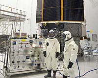 Kourou, French Guiana (SPX) Apr 24, 2009The Herschel space telescope for Arianespace's next Ariane 5 mission literally "chilled out" this week with the loading of liquid helium that will help it gather data on the formation of stars and galaxies. |