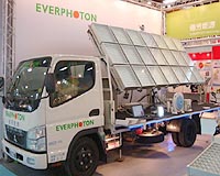 Taipei, Taiwan (SPX) Nov 24, 2008 Everphoton has launched its latest design of HCPV module. With well-designed Fresnel lens, high-efficiency triple junction compound semiconductor solar cells (cell efficiency up to 35%), and advanced cell packaging technology, compact modules can achieve 25% solar energy conversion efficiency. As HCPV becomes a trend in the photovoltaic market, more and more companies are aware of the high efficiencies and performance of the new system. After just months of Everphoton's first generation standard module, Everphoton again improved the design and came up with the latest Compact HCPV solar module. With smaller cells (2.5x2.5mm) and higher light concentration ration (about 700x), the thickness of the module can also be reduced by 50%. Unlike the si-base solar cells, III V compound semi-conductor cell dissipate heat faster due to smaller cell size, so no heat sink or cooler is required for the system. Together with Compact modules, there is another innovative design offered to the market by Everphoton, the MSPS-1 - Mobile Solar Power Supply. Loaded with 21 Compact modules, the MSPS-1 generates 1 kW power at peak. The 3.5L truck increases the mobility to the 1kw power station, and makes it capable of powering remote area, outdoor events, or electrical vehicles. "Now people can enjoy the convenient and clear energy from the Sun, anytime and anywhere," says Everphoton, "we believe MSPS-1 can not only replace traditional fossil-fuel based generators but also act as a mobile power station." Everphoton was founded in 2007 with investments from global top five LED packaging house Everlight Electronics and electronic material producer Yee Fong Chemical. Everlight is one of the major shareholders of Everphoton and Epistar. Share This Article With Planet Earth