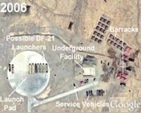 Washington (AFP) May 15, 2008 Commercial satellite imagery has revealed an extensive nuclear missile site in central China with nearly sixty launch pads for medium-range missiles capable of striking Russia or India, a researcher said Thursday. The images from Google Earth show different types of launch pads, command and control facilities, and missile deployment equipment at a large facility in downtown Delingha, said Hans Kristensen, a researcher with the Federation of American Scientists. "The US government often highlights China's deployment of new mobile missiles as a concern but keeps the details secret, so the discovery of the deployment area provides the first opportunity for the public to better understand how China operates its mobile ballistic missiles," he wrote. The find comes only two weeks after the discovery of a secret Chinese nuclear submarine base on Hainan Island in South China Sea, also using commercial satellite imagery and published by Jane's Intelligence Review. The latest images were posted along with Kristensen's analysis on the website of the Federation of American Scientists. Kristensen said the imagery revealed missile launch sites along a 275-kilometer (170 miles) stretch of highway leading from the city of Delingha through Da Qaidam to Mahai in the northern part of Qinghai province. Thirty-six launch pads were arrayed in three strings extending north of the highway and west of Delingha. Another 22 launch pads were detected in an area running west of Da Qaidam to Mahai, according to Kristensen's analysis. "From these launch pads DF-21 missiles would be within range of southern Russia and northern India (including New Delhi), but not Japan, Taiwan or Guam," he wrote. DF-21s are medium range solid fuel missiles that have been replacing China's older DF-3 and DF-4 liquid fuel missiles. Kristensen said the imagery shows what appear to be a buried command and control bunker marked by antenas at each of the deployment area. In downtown Delingha, images show what appear to be the headquarters of a missile brigade base with tentlike structures of identical size and design as structures previously detected on DF-21 launch pads. An open area near the base contained what appeared to be camouflaged nets over unidentified vehicles, he said. Community Email This Article Comment On This Article Related Links Learn about nuclear weapons doctrine and defense at SpaceWar.com Learn about missile defense at SpaceWar.com All about missiles at SpaceWar.com Learn about the Superpowers of the 21st Century at SpaceWar.com