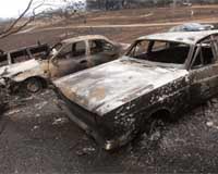 Melbourne (AFP) March 1, 2009 Australian firefighters warned Sunday that gale-force winds forecast for this week threaten to fan wildfires that have killed 210 people in the country's scorched southeast. Gusts of up to 150 kilometres (93 miles) an hour forecast for Tuesday may send fires racing beyond containment lines, Victoria state's Emergency Services Commissioner Bruce Esplin said. He also warned the winds could bring down trees and powerlines already damaged by the blazes and advised residents to leave early unless they were committed to staying in their homes and fighting the flames. Asplin said conditions had the potential spark firestorms as devastating as "Black Saturday" on February 7 this year, Australia's worst fire disaster, or "Ash Wednesday" in 1983, when 75 people died. "The weather forecast is for conditions that could approximate Black Saturday or Ash Wednesday," Esplin said. "There is no room for complacency and there is a very strong need for everybody to be prepared to play their part." The winds are expected to begin on Monday night then peak on Tuesday. Authorities said schools may be closed on Tuesday and police said officers still sifting ashes in the disaster zone for more bodies would suspend their activities on the day because conditions would be too dangerous. More than 3,000 firefighters are battling four major blazes in Victoria state, carving out containment lines up to 60 metres (200 feet) wide to create a fuel-free buffer zone around the flames. Country Fire Authority chief Russell Rees said additional resources would be on the ground from Monday night. "History shows that fires that start in the night cause the most confusion and the most difficulty," he said. "To wake up in the morning to have fire around and on your doorstep is a terrifying thing." The warning comes as official figures show the Victorian capital Melbourne experienced its driest start to the year since records began in the 1850s, the Australian Broadcasting Corporation reported. It said the weather bureau reported Australia's second largest city had just one millimetre (0.04 inches) of rain in January and three millimetres in February. Authorities warn wildfires will remain a threat until April unless rain falls in the parched region. The death toll has remained at 210 since last Wednesday, but is expected to climb further once formal identification procedures are completed, with the army saying on Saturday that 37 people were still missing.