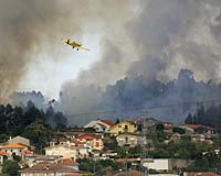 Lisbon (AFP) Aug 19, 2009 Hundreds of firefighters battled raging wildfires in northern Portugal and Spain Wednesday, as the flames disrupted an international train route and sparked the evacuation of a village. Firefighters and police backed by water-dropping aircraft battled several wildfires in northern Portugal as strong winds hampered their task, reigniting some blazes that had been under control, the civil protection agency said. An international train route used by passengers travelling from the coast of Portugal to France was cut off by a fire for several hours, operators said. Some 250 firefighters backed by five water-dropping helicopters and planes had fought to control the fire which threatened the railroad. One fire raging in the natural park of Douro in northwest Portugal crossed the border into Spain, leading to the evacuation of a village. Residential areas in Portugal are not threatened by the fires, which have taken place in forest areas, the civil protection agency said. Firefighters had brought several of the fires under control by late Wednesday but more than 150 of them were still battling two blazes near Spain. But authorities in neighbouring Spain said they had ordered residents to leave the village of La Bouza, Salamanca, as flames approached the area. Earlier Wednesday, more than 300 Spanish firefighters and soldiers, backed by 17 aircraft, were fighting a wildfire that has destroyed some 5,000 hectares in the northern region of Aragon, officials said. Strong winds and scorching temperatures have made the fire, which erupted on Tuesday for unknown reasons inside a military training camp at San Gregorio near Zaragoza, difficult to control, the Aragon government said. Firefighting efforts were complicated by the risk that weapons in the camp could explode from the heat and this was restricting the movement of ground forces, it added in a statement. Between January 1 and August 9 wildfires have ravaged 84,064 hectares of land in Spain, more than during all of last year and the highest amount in the past decade, figures released Wednesday by the environment ministry showed. More than half of the fire damage this year was in northeastern Spain. The blazes have claimed eight lives, including six firefighters, since last month. Last week Greenpeace warned that heat waves and drier land caused by climate change have combined with "land use changes, abandonment of rural areas and a lack of management of forest areas" to make forests "more flammable, leading to ever larger and more uncontrollable fires." In Portugal, fires destroyed nearly 24,000 hectares of land between January 1 and August 15, around 7,000 hectares more than all of last year. Dozens of fires have been erupting every day since the start of summer in Portugal, but most are quickly brought under control. On Tuesday alone, firefighters put out 176 forest fires, according to the civil protection agency. burs/lth/jj Share This Article With Planet Earth