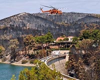 Athens (AFP) Aug 25, 2009 Firefighters claimed victory Tuesday over a huge wildfire that ravaged the outskirts of Athens over four days, destroying scores of homes and leading to fierce criticism of the government's response. "There are no more fires currently in Greece," a fire department spokesman told AFP late Tuesday. But he added that firefighters remain mobilised "to respond to any possible resurgence of the fires" in the Athens region where damage to one of the area's last forests across a distance of 30 kilometres (17 miles) was deemed irreparable. As the flames retreated, the government faced criticism for failing to prevent another ecological disaster exactly two years after the worst inferno in recent memory, which killed 77 people around the country. Greek media disputed officials' claims that strong winds made a speedy containment of the wildfires impossible, noting that similar excuses had been put forward in 2007. "There is no excuse for the incredible disaster in greater Athens," To Vima daily said, blasting the government for allegedly leaving Greece's firefighting forces 3,000 staff short of their nominal strength. Ethnos daily poured scorn on an earlier statement by government spokesman Evangelos Antonaros that appeared to blame pine trees for the fire. "Pine trees may be pretty but in a way they are an additional aggravating factor in the spread of fires," Antonaros had said Monday. The disaster was a fresh blow to the embattled conservative government of Prime Minister Costas Karamanlis which is already struggling under the weight of corruption scandals. Karamanlis had called an early general election a month after the 2007 fires disaster, and he is again widely reported to be calculating when to hold another early election, having just a single-seat majority in parliament. His administration teeters on the edge barely halfway through its four-year term. "Two years on, we're having the same debate," said political analyst George Sefertzis. "This time round, there is no doubt that the government will reap the consequences for failing to heed the lessons of the past." Late Tuesday the government announced a massive plan to compensate people whose properties were devastated by the blazes. The government wants "to assure each victim a home, compensating for any damages and restoring the environment to its initial state," said spokesman Antonaros. The Greek section of the World Wildlife Fund (WWF) was also scathing in its comments, noting that the country had once again run afoul of "a lack of preparation, poor coordination and inertia." Limiting his televised appearances during the crisis, the prime minister late on Monday praised the fire pilots' "heroic" efforts and thanked countries that sent assistance. More than 500 firefighters -- joined by counterparts from Austria, Cyprus, France, Italy and Turkey -- were deployed north and northeast of Athens where the fire scorched more than 20,000 hectares and destroyed scores of homes. But the government said it had turned down a "generous" offer of assistance from Macedonia, the tiny northern neighbour with whom relations are tense over an 18-year name dispute. The public works ministry on Monday said around 150 homes had been damaged after a first estimate but it was widely agreed that scores of properties were completely destroyed. A more detailed inspection of stricken areas began on Tuesday. A small number of people were in temporary housing, the authorities said. At least two people were injured according to reports, and a waterbomber pilot was picked out of the sea off Nea Makri on Monday after his plane lost one of its floats, the government said. The plane was towed to safety. Share This Article With Planet Earth
