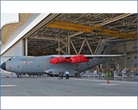 Paris, France (SPX) Sep 09, 2009 The first A400M (MSN1) has left the Final Assembly Line (FAL) on 2nd September, to be moved to the next ground test station which now is outdoors. This follows satisfactory completion of all indoor ground testing on station 35. Those included verification and checks of all the systems and of the modifications and improvements that were embodied into MSN1 over the past months to make it a more mature aircraft at First Flight. Trials to be performed on the first outdoor station (station 30) include fuel tests, pressurisation tests, as well as navigation and communication checks, and will last approximately two weeks. Subsequently, the aircraft will receive its engines and the Auxiliary Power Unit (APU). Actually, all four engines have already been assembled, and are fitted with their propellers, awaiting installation of the final FADEC engine software. They are to be mounted onto the aircraft in CW 38. Pending installation of the engines, the aircraft is fitted with dummy engines to simulate the weight in the wings and to allow for proper fuel calibration tests (on station 30). First Flight of the A400M is to take place around the turn of the year. Share This Article With Planet Earth