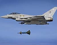 London UK (SPX) Nov 26, 2007 The RAF's newest and most versatile multi-role fighter, Eurofighter Typhoon has dropped its first in-service RAF bomb - and the weapon scored a direct hit on the target at sea off the Welsh coast. The weapon, a 1000lb Paveway 2 laser guided bomb (LGB) was dropped by a Typhoon of No. 11 Squadron based at RAF Coningsby in Lincolnshire. Baroness Taylor, Minister for Defence Equipment and Support said "Typhoon is an exceptional fighter jet; we have already seen it perform in its air-to-air role in June this year when it defended UK airspace. The first RAF bomb drop is a significant step towards the Typhoon being ready for operational use." The Pilot of the BAE Systems aircraft said "The drop ran very smoothly and is testament to the exceptional performance of the aircraft even at this early stage of multi-role development." Typhoon Project Team Leader, Air Commodore Chris Bushell, commented "This successful weapons trial is an important step on the route towards achieving multi-role capability for Typhoon. The result of this trial has emphasised the effectiveness that this will add to the Typhoon fleet and that delivery of the future operational multi-role aircraft is on track". Trials are continuing to perfect its bomb-dropping techniques with a view to achieving an initial air-to-ground attack capability by the summer of 2008. This follows on from the aircraft being declared operational in the air-to-air role, defending UK air space from aerial threats, on 29 June this year. Community Email This Article Comment On This Article Related Links The latest in Military Technology for the 21st century at SpaceWar.com