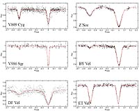 The advantage of the OMC This is particularly useful for binary systems with an orbital period of a few days - these require long observation times in order to be able to determine the entire light curve. Selection and light curve analysis The twenty binary systems in this study were selected on the basis that their light curves had not been analysed before, and that they had a large number of OMC data points. Using the OMC photometric data, Zasche performed the first analysis of the folded light curves for these binary systems. Figure 1 shows the folded light curve for six of the eclipsing binaries in this study. Analysis of the folded light curves yielded several orbital parameters of these binary star systems including the orbital period and the inclination of the orbits relative to the line of sight. In addition, a number of other basic properties such as the relative contribution of each star to the total luminosity, the relative sizes of the two stars and the ratio of the masses of the two stars were also derived. The deepest minimum in the light curve was defined to correspond with the eclipse of the primary star by the secondary star.