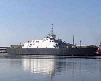 Marinette WI (SPX) Mar 18, 2008 The nation's first Littoral Combat Ship, Freedom (LCS 1), has successfully completed another testing milestone with the "light off" and test of the new warship's electric plant. The first ship in its class, the agile, 377-foot Freedom was designed and built by a Lockheed Martin-led industry team to assist the U.S. Navy in future littoral - or close-to-shore - operations. The recent tests aboard Freedom included the light off - or initial operation - of the ship's four 750-kilowatt Fincantieri Isotta Fraschini diesel generators and testing of its three-megawatt electrical power plant. The testing of the generators involved loading each generator to its full-power capacity. Following successful completion of this step, further testing included synchronizing - or "paralleling" in shipbuilding terms - the generators to attain the power levels required to support Freedom's operations at sea. In addition, the power quality was closely evaluated to ensure all ship systems and sensors requiring electrical power could operate effectively. This marks a significant milestone for Freedom as her electric plant is completely functional and able to support all tests, evaluations and operations at sea. Testing and outfitting of Freedom continues dockside at Marinette Marine. Freedom will be delivered to the U.S. Navy in 2008 and will be homeported inSan Diego. The Lockheed Martin team's design for LCS is a survivable, semi-planing steel monohull that provides outstanding maneuverability with proven sea-keeping characteristics to support launch and recovery operations, mission execution and optimum crew comfort. Team members also includes naval architect Gibbs and Cox, ship builders Marinette Marine, a subsidiary of The Manitowoc Company, and Bollinger Shipyards, as well as best-of-industry domestic and international teammates to provide a flexible, low-risk war fighting solution. Community Email This Article Comment On This Article Related Links Naval Warfare in the 21st Century