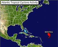 Miami (AFP) July 3, 2008Tropical storm Bertha has formed in the Atlantic, southwest of Africa's Cape Verde islands, the US National Hurricane Center in Miami said Thursday. |