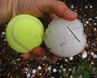 Tennis ball-sized hail stones pound French villagesRoanne, France (AFP) May 22, 2009 Fist-sized hail stones "like rocks from the sky" smashed roofs and car windows across a 20-kilometre (13-miles) wide strip of central France, witnesses and firefighters said Friday. The violent 15-minute squall blew up at around nightfall on Thursday after an otherwise pleasant day around Roanne, a small town in central France. There were no immediate reports of injuries. "I was just fee ... read more |