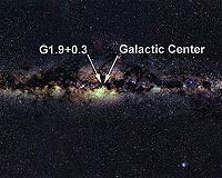The Youngest Supernova The explosion occurred about 140 years ago, making it the most recent supernova in the Milky Way as measured in Earth's time frame. Previously, the last known supernova in our galaxy occurred around 1680, an estimate based on the expansion of its remnant, Cassiopeia A. The remains of this young supernova are known to astronomers as "G1.9+0.3." The numbers denote the galactic coordinates of the supernova's expanding debris cloud, located deep in the heart of the Milky Way. The explosion itself was not seen because it occurred in a dense field of gas and dust. This made the object about a trillion times fainter, in optical light, than an unobscured supernova. However, the remnant it left behind can be seen by X-ray and radio telescopes. "We can see some supernova explosions with optical telescopes across half of the universe, but when they're in this murk we can miss them in our own cosmic backyard," says Stephen Reynolds of North Carolina State University in Raleigh, who led the Chandra study. "Fortunately, the expanding gas cloud from the explosion shines brightly in radio waves and X-rays for thousands of years. X-ray and radio telescopes can see through all that obscuration and show us what we've been missing." Astronomers regularly observe supernovas in other galaxies like ours. Based on those observations, researchers estimate about three explode every century in the Milky Way. "If the supernova rate estimates are correct, there should be the remnants of about 10 supernova explosions that are younger than Cassiopeia A," said David Green of the University of Cambridge in the United Kingdom, who led the Very Large Array study. "It's great to finally track one of them down." The tracking of this object began in 1985, when astronomers, led by Green, used the Very Large Array to identify the remnant of a supernova explosion near the center of our galaxy. Based on its small size, it was thought to have resulted from a supernova that exploded about 400 to 1000 years ago. Twenty-two years later, Chandra observations revealed the remnant had expanded by a surprisingly large amount, about 16 percent, since 1985. This indicates the supernova remnant is much younger than previously thought. That young age was confirmed in recent weeks when the Very Large Array made new radio observations. This comparison of data pinpoints the age of the remnant at 140 years - possibly less if it has been slowing down - making it the youngest on record in the Milky Way. Besides being the record holder for youngest supernova, the object is of considerable interest for other reasons. The high expansion velocities and extreme particle energies that have been generated are unprecedented and should stimulate deeper studies of the object with Chandra and the Very Large Array. "No other object in the galaxy has properties like this," Reynolds said. "This find is extremely important for learning more about how some stars explode and what happens in the aftermath." These results are scheduled to appear in The Astrophysical Journal Letters. Community Email This Article Comment On This Article Related Links Chandra X-ray Observatory Stellar Chemistry, The Universe And All Within It