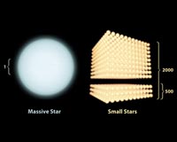 Pasadena CA (JPL) Aug 20, 2009 For decades, astronomers have gone about their business of studying the cosmos with the assumption that stars of certain sizes form in certain quantities. Like grocery stores selling melons alone, and blueberries in bags of dozens or more, the universe was thought to create stars in specific bundles. In other words, the proportion of small to big stars was thought to be fixed. For every star 20 or more times as massive as the sun, for example, there should be 500 stars with the sun's mass or less. This belief, based on years of research, has been tipped on its side with new data from NASA's Galaxy Evolution Explorer. The ultraviolet telescope has found proof that small stars come in even bigger bundles than previously believed; for example, in some places in the cosmos, about 2,000 low-mass stars may form for each massive star. The little stars were there all along but masked by massive, brighter stars. "What this paper is showing is that some of the standard assumptions that we've had - that the brightest stars tell you about the whole population of stars - this doesn't seem to work, at least not in a constant way," said Gerhardt R. Meurer, principal investigator on the study and a research scientist at Johns Hopkins University, Baltimore, Md. Astronomers have long known that many stars are too dim to be seen in the glare of their brighter, more massive counterparts. Though the smaller, lighter stars outnumber the big ones, they are harder to see. Going back to a grocery story analogy, the melons grab your eyes, even though the total weight of the blueberries may be more. Beginning in the 1950s, astronomers came up with a method for counting all the stars in a region, even the ones they couldn't detect. They devised a sort of stellar budget, an equation called the "stellar initial mass function," to estimate the total number of stars in an area of the sky based on the light from only the brightest and most massive. For every large star formed, a set number of smaller ones were thought to have been created regardless of where the stars sat in the universe. "We tried to understand properties of galaxies and their mass by looking at the light we can see," Meurer said. But this common assumption has been leading astronomers astray, said Meurer, especially in galaxies that are intrinsically small and faint. To understand the problem, imagine trying to estimate the population on Earth by observing light emitted at night. Looking from above toward North America or Europe, the regions where more people live light up like signposts. Los Angeles, for example, is easily visible to a scientist working on the International Space Station. However, if this method were applied to regions where people have limited electricity, populations would be starkly underestimated, for example in some sections of Africa. The same can be said of galaxies, whose speckles of light in the dark of space can be misleading. Meurer and his team used ultraviolet images from the Galaxy Evolution Explorer and carefully filtered red-light images from telescopes at the Cerro Tololo Inter-American Observatory in Chile to show that many galaxies do not form a lot of massive stars, yet still have plenty of lower-mass counterparts. The ultraviolet images are sensitive to somewhat small stars three times or more massive than the sun, while the filtered optical images are only sensitive to the largest stars with 20 or more times the mass of the sun. The effects are particularly important in parts of the universe where stars are spread out over a larger volume - the rural Africa of the cosmos. There could be about four times as many stars in these regions than previously estimated. "Especially in these galaxies that seem small and piddling, there can be a lot more mass in lower mass stars than we had previously expected from what we could see from the brightest, youngest stars," Meurer said. "But we can now reduce these errors using satellites like the Galaxy Evolution Explorer." This research was published in the April 10, 2009, issue of Astrophysical Journal. Share This Article With Planet Earth
