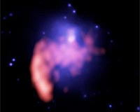 Washington DC (SPX) Oct 17, 2008 A team of scientists, including astronomers from the Naval Research Laboratory (NRL), have detected long wavelength radio emission from a colliding, massive galaxy cluster which, surprisingly, is not detected at the shorter wavelengths typically seen in these objects. The discovery implies that existing radio telescopes have missed a large population of these colliding objects. It also provides an important confirmation of the theoretical prediction that colliding galaxy clusters accelerate electrons and other particles to very high energies through the process of turbulent waves. The team revealed their findings in the October 16, 2008 edition of Nature. This new population of objects is most easily detected at long wavelengths. Professor Greg Taylor of the University of New Mexico and scientific director of the Long Wavelength Array (LWA) points out, "This result is just the tip of the iceberg. When an emerging suite of much more powerful low frequency telescopes, including the LWA in New Mexico, turn their views to the cosmos, the sky will 'light up' with hundreds or even thousands of colliding galaxy clusters." NRL has played a key role in promoting the development of this generation of new instruments and is currently involved with the development of the LWA. NRL radio astronomer and LWA Project Scientist Namir Kassim says "Our discovery of a previously hidden class of low frequency cluster-radio sources is particularly important since the study of galaxy clusters was a primary motivation for development of the LWA." The discovery of the emission in the galaxy cluster Abell 521 (or A521 for short) was made using the Giant Metrewave Radiotelescope (GMRT) in India, and its long wavelength nature was confirmed by the National Science Foundation's (NRAO) Very Large Array (VLA) radio telescope in New Mexico. The X-ray emission comes from hot thermal gas, a well-known sign-post of massive galaxy clusters. Furthermore, its elongated shape indicates that the cluster has undergone a recent violent collision or "merger event" in which another group or cluster of galaxies was swallowed up by the gravitational potential of the main cluster. Interferometrics Inc. and NRL scientist Tracy Clarke, who is also the LWA System Scientist, notes "In addition to teaching us about the nature of Dark Matter, merging clusters are also important in studies of the mysterious nature of Dark Energy. Understanding these two strange components of the Universe will help us understand its ultimate destiny." In the radio image there is a strong, oblong source of emission located on the lower left periphery of the X-ray gas detected by Chandra; this is a separate source. In the center of the cluster, within the region indicated by a dashed circle, there is radio emission which changes significantly with wavelength. At the longest wavelength (125 cm, shown) it is clearly detected, but at a wavelength of 49 cm it is much fainter, and it is almost entirely gone at 21 cm wavelength. This multi-wavelength picture of the diffuse emission is in good agreement with theoretical predictions for particle acceleration by turbulent waves generated by a violent collision. In a broader astrophysical context, galaxy clusters are the largest gravitationally bound systems in the Universe and their collisions are the most energetic events since the Big Bang. Says team leader Gianfranco Brunetti (Instituto di Radioastronomia, Bologna, Italy), "The A521 system provides evidence that turbulence acts as a source of particle acceleration in an environment that is unique in the Universe due to its large spatial and temporal scales, and due to the low density and high temperature of the gas." Community Email This Article Comment On This Article Related Links Naval Research Laboratory Stellar Chemistry, The Universe And All Within It