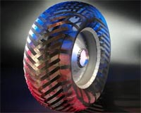 Akron OH (SPX) Dec 05, 2008 Goodyear Tire and Rubber and NASA have taken one small step backward to make one giant leap forward and help prepare for future missions to the moon and to Mars. Goodyear and the NASA Glenn Research Center (GRC) recently completed a jointly-funded project for the development and production of twelve replicates of the original wire-mesh moon tire used on the Apollo Lunar Roving Vehicle in the early 1970s. This was the first step toward understanding this unique non-pneumatic tire technology, and its applications on both the moon and Earth. "Although there was some reference material for designing the replicate tire, there was little detail about the manufacturing process," said Goodyear Project Leader Rick Laske, noting how the team had to reinvent techniques to recreate the wire mesh tire. The team examined one of the moon tires on display at the National Air and Space Museum in Washington, D.C., and corresponded with two retired members of the Apollo Lunar Roving Vehicle team, who each had a tire that had been given to them as a souvenir for their work. Examination of the original moon tires provided the primary reference information for judging the quality of the replicates, according to Vivake Asnani, NASA's principal investigator. Four major components comprise the tire and wheel design: mesh, tread, inner-frame, and hub. The mesh is woven from piano wire and the tread is a series of metal strips intended to protect the mesh from impact while providing increased contact area for floatation in soft soil. An inner-frame, comprised of a relatively rigid metal structure, prevents the mesh from over- deforming during impact, while the hub holds the mesh and inner-frame together and connects the assembly to the vehicle. "Before the wire mesh could be woven, 3,000 feet of wire had to be custom- crimped and cut into 800 pieces," said Laske. A hand loom was designed to weave the crimped wires into a rectangle measuring approximately 100 inches long and 25 inches wide. Each end of the rectangular weave was then interlaced by hand to form a cylinder, which behaves in a manner similar to a child's finger trap puzzle, lengthening and shortening with changes in its diameter. Sides of the mesh cylinder were pulled down and clamped to a circular jig, roughly the size of a wheel hub, to give the mesh the shape of a tire. Then the jig and mesh were baked in an industrial oven to relieve residual stress from the wire. The twelve replicate tires were evaluated for geometry, stiffness, and other performance factors, and compared against data from the two antique moon tires, as well as limited measurements taken in the 1960s. "The measurements indicate that the original and replicate wire mesh moon tires have nearly identical mechanical properties," said Asnani, "We are now testing the replicates to determine their traction and endurance capabilities. These data will enable NASA and industry to determine possible applications for the wire mesh tire." "There was great synergy in this project, and we are continuing our collaboration to mature this technology," Asnani added. Goodyear's and NASA's expertise are now being applied to the development of a second generation of tires, capable of outfitting a future fleet of lunar vehicles. Share This Article With Planet Earth