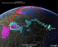 Ann Arbor MI (SPX) Sep 23, 2009 Sometimes a picture really is worth a thousand words, particularly when the picture is used to illustrate science. Technology is giving us better pictures every day, and one of them is helping a NASA-funded scientist and her team to explain the behavior of a greenhouse gas. Google Earth - the digital globe on which computer users can fly around the planet and zoom in on key features - is attracting attention in scientific communities and aiding public communication about carbon dioxide. Recently Google held a contest to present scientific results using KML, a data format used by Google Earth. "I tried to think of a complex data set that would have public relevance," said Tyler Erickson, a geospatial researcher at the Michigan Tech Research Institute in Ann Arbor. He chose to work with data from NASA-funded researcher Anna Michalak of the University of Michigan, Ann Arbor, who develops complex computer models to trace carbon dioxide back in time to where it enters and leaves the atmosphere. "The datasets have three spatial dimensions and a temporal dimension," Erickson said. "Because the data is constantly changing in time makes it particularly difficult to visualize and analyze." A better understanding of the carbon cycle has implications for energy and environmental policy and carbon management. In June 2009, Michalak described this research at the NASA Earth System Science at 20 symposium in Washington, D.C. A snapshot from Erickson's Google Earth application shows green tracks representing carbon dioxide in the lowest part of the atmosphere close to Earth's surface where vegetation and land processes can impact the carbon cycle. Red tracks indicate particles at higher altitudes that are immune from ground influences. The application is designed to educate the public and even scientists about how carbon dioxide emissions can be traced. A network of 1,000-foot towers across the United States is equipped with instruments by NOAA to measure the carbon dioxide content of parcels of air at single locations. The application is designed to educate the public and even scientists about how carbon dioxide emissions can be traced. A network of 1,000-foot towers across the United States, like the tower above, are equipped with instruments by NOAA to measure the carbon dioxide content of parcels of air at single locations. But where did that gas come from and how did it change along its journey? To find out, scientists rely on a sleuthing technique called "inverse modeling" - measuring gas concentrations at a single geographic point and then using clues from weather and atmospheric models to deduce where it came from. The technique is complex and difficult to explain even to fellow scientists. Michalak related the technique to cream in a cup of coffee. "Say someone gave you a cup of creamy coffee," Michalak said. "How do you know when that cream was added?" Just as cream is not necessarily mixed perfectly, neither is the carbon dioxide in the atmosphere. If you can see the streaks of cream (carbon dioxide) and understand how the coffee (atmosphere) was stirred (weather), then scientists can use those clues to retrace the time and location that the ingredient was added to the mix. The visual result typically used by scientists is a static two-dimensional map of the location of the gas, as averaged over the course of a month. Most carbon scientists know how to interpret the 2D map, but visualizing the 3D changes for non-specialists has proved elusive. Erickson spent 70 hours programming the Google Earth application that makes it easy to navigate though time and watch gas particles snake their way toward the NOAA observation towers. For his work, Erickson was declared one of Google's winners in March 2009. "Having this visual tool allows us to better explain the scientific process," Michalak said. "It's a much more human way of looking at the science." The next step, Erickson said, is to adapt the application to fit the needs of the research community. Scientists could use the program to better visualize the output of complex atmospheric models and then improve those models so that they better represent reality. "Encouraging more people to deliver data in an interactive format is a good trend," Erickson said. "It should help innovation in research by reducing barriers to sharing data." Share This Article With Planet Earth