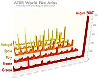 Paris, France (SPX) Sep 04, 2007 Greece has experienced more wildfire activity this August than other European countries have over the last decade, according to data from ESA satellites. The country is currently battling an outbreak of blazes, which began last Thursday, that have spread across the country killing more than 60 people. ESA's ERS-2 and Envisat satellites continuously survey fires burning across the Earth's surface with onboard sensors - the Along Track Scanning Radiometer (ATSR) and the Advanced Along Track Scanning Radiometer (AATSR) respectively, known as the ATSR Word Fire Atlas, which is available to users online in near-real time. The ATSR World Fire Atlas is the longest worldwide fire atlas available. Even if the atlas is not supposed to pick up all fires due to satellite overpass constraints and cloud coverage, it is statistically representative from one month to the other and from one year to the other. Working like thermometers in the sky, the sensors measure thermal infrared radiation to take the temperature of Earth's land surfaces. Temperatures exceeding 308K at night are classed as burning fires. Data gathered from July 1996 to 28 August 2007 was used to plot the number of fires occurring monthly and show Greece has had four times the number of fires this August compared to its July and August 1998 records. Weather conditions, including record summer temperatures and hot dry winds, in 2007 made parts of the Mediterranean - including Greece and southern Italy - a tinderbox, the United Nations Food and Agriculture Organization said. The ATSR World Fire Atlas provides data approximately six hours after acquisition. All available satellite passes are processed to create the ATSR World Fire Atlas. In addition to maps, the time, date, longitude and latitude of the hot spots are provided. The data are used for research in atmospheric chemistry, land use change, global change ecology, fire prevention and management and meteorology. Quantifying fires is important for the ongoing study of climate because they have a significant impact on global atmospheric pollution, with biomass burning contributing to the global budgets of greenhouse gases, like carbon dioxide. The 1998 El Nino, for example, helped encourage fires across Borneo which emitted up to 2.5 billion tonnes of carbon into the atmosphere, equivalent to Europe's entire carbon emissions that year. One of the biggest problems during and after fires is obtaining an overall view of the damage and its evolution. With fires visible from space, Earth Observation is also being used to detect and monitor the active spots over affected areas. In October 2000, ESA and the French space agency (CNES) initiated the International Charter Space and Major Disasters, a joint initiative with now ten members, aiming at rapidly tasking Earth Observation satellites and delivering spacemaps to users concerned with emergency response, such as civil protection authorities, anywhere in the world. Such a capacity can help monitor fire hazard by integrating imagery into geographic information systems used by decision makers and actors in the field. On 29 August, the National Cadastral Organisation of Greece requested support from the International Charter in response to the fire events affecting the country.