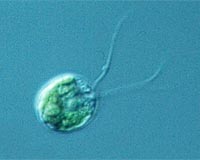 Walnut Creek CA (SPX) Oct 12, 2007 The genome analysis of a tiny green alga has uncovered hundreds of genes that are uniquely associated with carbon dioxide capture and generation of biomass. Among the 15,000-plus genes revealed in the study are those that encode the structure and function of the specialized organelle that houses the photosynthetic apparatus, the chloroplast, which is responsible for converting light to chemical energy. The genome also provides a glimpse back through time to the last common ancestor of plants and animals. The project, led by the U.S. Department of Energy Joint Genome Institute (DOE JGI); the University of California, Los Angeles; and the Carnegie Institution, and including contributions from over 100 international collaborators, is featured in the Oct. 12 edition of the journal Science. The single-celled alga Chlamydomonas reinhardtii, while less than a thousandth of an inch in diameter, or about one fiftieth the size of a grain of salt, is packed with many ancient and informative surprises. Affectionately known to its large research community as "Chlamy", the alga is a powerful model system for the study of photosynthesis and cell motility. The genes that encode the alga's "flagella", which propel it much like a human sperm tail, were also cataloged in this study. Defects in these genes are associated with a growing list of human diseases. "The Chlamy genome is like a green time capsule that affords a view into the complex core machinery that gave rise to today's energy-capturing and oxygen-producing chloroplasts," said Daniel Rokhsar, DOE JGI Computational Biology Program head, who co-led the effort with DOE JGI Computational Scientist Simon Prochnik, Arthur Grossman of the Carnegie Institution and Stanford University, and Sabeeha Merchant of UCLA. "DOE JGI's particular interest in Chlamy centers on its keen ability to efficiently capture and convert sunlight into energy, and its role in managing the global pool of carbon," said Rokhsar. The sequence analysis presents a comprehensive set of genes--the molecular and biochemical instructions--required for these capabilities. Rokhsar said that with these data now publicly available, new strategies for biology-based solar energy capture, carbon assimilation, and detoxification of soils by employing algae to remove heavy metal contaminants will begin to surface. The analysis will also shed light on the capabilities of related algae that can produce biodiesel and biocrude as alternatives to fossil fuels. The results will also help researchers figure out the construction of chloroplasts, which house the machinery inside plant and algal cells that serves as "solar panels," absorbing sunlight and coupling carbon dioxide and water to produce the starting materials, sugars, that fuel all other metabolic processes. These pathways, described in the DNA sequence, represent opportunities for improving efficiencies for this conversion process and ultimately biofuels production. "Chlamy's code helps us describe the ancient ancestor of plants and animals that lived over a billion years ago," said Merchant. "The work has generated a clear roadmap for exploring the roles of numerous genes in photosynthetic function, for defining the structure and dynamic aspects of flagellar function, and for understanding how the soil environment, with its large fluctuations in nutrients, has molded the functionality of organisms through evolutionary time." Chlamy competes for scarce nutritional resources against a panoply of other microorganisms in its native freshwater and soil habitats, and it has evidently succeeded by evolving a large arsenal of proteins to transport raw materials into the cell. Over the ages, as plants and animals have specialized, scores of species have lost facets of these capabilities. "Yet Chlamy possesses the largest known array of enzymes that manufacture the signaling molecules cyclic AMP and cyclic GMP. These cyclic nucleotides play key roles in shuttling nutrients into the cell, controlling motility of the organism via flagellar function, and determine sexual development," said Prochnik. The published analysis of approximately 120 million units of DNA sequence generated by DOE JGI showed that Chlamy shares nearly 7,000 genes with other organisms; more than a third of these are shared by both humans and flowering plants, which helps support the argument for their common ancestry. Many of these genes are normally associated with animals, such as those that describe the circuitry for flagella, enabling this alga to swim. Others have affinity with the earth's early photosynthetic organisms, cyanobacteria, dating far back into Precambrian times, more than three billion years ago, when biodiversity began its explosive proliferation. "Although Chlamydomonas is a plant, there are clear similarities between this photosynthetic organism and animals that would surprise the average person on the street," said Grossman. "Just 20 years ago, no one would have guessed that an alga would have retained many of the functions we associate with humans and would be useful for developing a basic understanding of certain human diseases." This resource may inform possible therapeutic strategies for human diseases associated with the fine hair structures of the cilia and flagella--for instance, the neurological movement disorder dyskinesia; polycystic kidney disease (PKD); and some forms of liver, respiratory and retinal degeneration disease. Community Email This Article Comment On This Article Related Links DOE/Joint Genome Institute Climate Science News - Modeling, Mitigation Adaptation