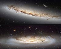 Hubble Highlights Two Galaxies That Are Losing ItParis, France (ESA) Oct 01, 2009 Newly released images, taken by the Hubble Space Telescope before the recent Servicing Mission, highlight the ongoing drama in two galaxies in the Virgo Cluster affected by a process known as 'ram pressure stripping', which can result in peculiar-looking galaxies. An extremely hot X-ray-emitting gas known as the intra-cluster medium lurks between galaxies within clusters. As galaxies move ... read more |
