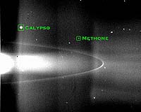 Pasadena CA (SPX) Feb 26, 2008 Gaps in the soup of high energy particles near the orbits of two of Saturn's tiny moons indicate that Saturn may be surrounded by undiscovered, near-invisible partial rings. A paper in the February issue of the journal Icarus suggests the larger Saturnian moons may not be the only ones contributing material to Saturn's ring system. A team of scientists has detected two peculiar breaks in the near-constant rain of high energy electrons that bombard Cassini when near Saturn. They made the discovery using Cassini's Low Energy Magnetospheric Measurement System, a part of the Magnetospheric Imaging Instrument. The gaping holes fall along the orbits of two newly discovered moons, Methone and Anthe. Methone, discovered by Cassini in 2004, is about 3 kilometers across (2 miles), while Anthe, discovered in Cassini images in 2007, is about 2 kilometers wide (1 mile). Both moons are located between the orbits of Mimas and Enceladus. "These observations tell us that even Saturn's smallest moons could be a source of dust in the Saturnian system," said Elias Roussos, the paper's lead author from the Max Planck Institute for Solar System Research in Katlenburg-Lindau, Germany. If the tiny moons are indeed feeding dust into the rings, Roussos says possible future detection and characterization of these rings by more Cassini sensors could provide information about the surface of the moons Methone and Anthe, which are difficult to observe due to their small size. Moons are known to absorb high energy particles. The fact that particles are missing is sensed by Cassini in the same way there are brief moments without rain falling on the windshield when driving under a bridge. These gaps in the flow of electrons showed that something wide was absorbing the charged particles. However, the gaps Cassini saw at Methone and Anthe are so wide, about 1,000 to 3,000 kilometers (600 to 1,900 miles) across, that they cannot be explained solely by the presence of such tiny moons. Instead, the measurements may indicate that the two moons are losing dust from their surface, building up one or more arcs of material along their orbits. Each ring arc is expected to be a few thousand kilometers wide and to comprise large dust grains or dust clumps. "The released material may develop into ring arcs due to the gravitational 'tug of war' between Saturn's larger moons, such as Mimas," added Roussos. "A similar process has been found to take place at the arc within Saturn's G-ring." Meteoroid impacts on Methone and Anthe are the most likely cause of the release of this material from their surfaces. The same process is thought to have formed Jupiter's faint rings at the orbits of the moons Amalthea, Thebe, Metis and Adrastea. The same situation might be happening at Saturn. In fact, rings of similar origin have also recently been detected in Cassini images along the orbits of the Saturnian moons Janus, Epimetheus and Pallene. "What's odd is that these inferred ring arcs still remain undetected in Cassini images, while the rings at Janus, Epimetheus and Pallene orbits, thought to form under the same process, are visible," said Roussos. "This means the dust grains making up these two different classes of rings have different characteristics and sizes. However the reason behind this difference is a mystery." Community Email This Article Comment On This Article Related Links Explore The Ring World of Saturn and her moons Jupiter and its Moons The million outer planets of a star called Sol News Flash at Mercury