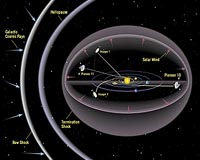 Bonn, Germany (SPX) Nov 10, 2009 Outer space, a place of enormous distances: for more than 30 years, unmanned spacecraft have journeyed to learn more about the depths of space, its planets and the nature of interplanetary space. Now, billions of kilometres from Earth, space probes are entering areas never before explored by humankind. At present, four of these space probes, objects created by human endeavours, are the furthest items from Earth ever constructed by mankind. The American probes Pioneer 10 and 11 as well as Voyager 1 and 2 have now passed beyond the orbital path of the last planet in our Solar System and are still travelling ever further from it. The US space probe Pioneer 10, destination Jupiter, took off from Cape Canaveral on 3 March 1973 on board an Atlas-Centaur launch vehicle. On its way to Jupiter, it also examined the asteroid belt and interplanetary space. As planned, it flew past Jupiter and continued sending data to Earth until January 2003. A service life of 21 months was originally planned - and almost 30 years were achieved.