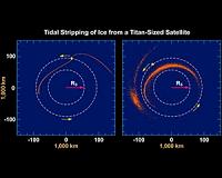 St. Louis MO (SPX) Dec 14, 2010 For centuries, people wondered how the leopard got its spots. The consensus is pretty solid that evolution played a major role. But it's only been five years since the arrival of high-resolution Cassini Mission images of Saturn's bizarre moon Iapetus that the international planetary community has pondered the unique walnut shape of the large (735 kilometer radius) body, considered by many to be one of the most astonishing features in the solar system. And there's no consensus as to how a mysterious large ridge that covers more than 75 percent of the moon's equator was formed. It's been a tough nut to crack. But now a team including an outer solar system specialist from Washington University in St. Louis has proposed a giant impact explains the ridge, up to 20 kilometers tall and 100 kilometers wide. William B. McKinnon, PhD, Washington University professor of earth and planetary sciences in Arts and Sciences, and his former doctoral student, Andrew Dombard, PhD, associate professor of earth and environmental sciences at the University of Illinois Chicago (UIC), propose that at one time Iapetus itself had a satellite, or moon, created by a giant impact with another big body. The sub-satellite's orbit, they say, would have decayed because of tidal interactions with Iapetus, and it would have gradually migrated towards Iapetus. At some point, the researchers say, the tidal forces would have torn the sub-satellite apart, forming a ring of debris around Iapetus that would eventually slam into the moon near its equator. "Imagine all of these particles coming down horizontally across the equatorial surface at about 400 meters per second, the speed of a rifle bullet, one after the other, like frozen baseballs," says McKinnon. "Particles would impact one by one, over and over again on the equatorial line. At first the debris would have made holes to form a groove that eventually filled up." "When you have a debris ring around a body, the collisional interactions steal energy out of the orbit," explains Dombard. "And the lowest energy state that a body can be in is right over the rotational bulge of a planetary body - the equator. That's why the rings of Jupiter, Saturn, Uranus and Neptune are over the equator." "We have a lot of corroborating calculations that demonstrate that this is a plausible idea," says Dombard, "but we don't yet have any rigorous simulations to show the process in action. Hopefully, that's next." Other planetary scientists believe the ridge was created by endogenic (within the planet) activity such as volcanism or mountain-building forces. "Some people have proposed that the ridge might have been caused by a string of volcanic eruptions, or maybe it's a set of faults," McKinnon notes. "But to align it all perfectly like that - there is just no similar example in the solar system to point to such a thing." "There are three critical observations that any model for the formation of the ridge has to satisfy," says Dombard. "They are: Why the feature is sitting on the equator; why only on the equator, and why only on Iapetus. I think we have something here that explains all those observations." Dombard will make a presentation on the preliminary findings at the fall meeting of the American Geophysical Union in San Francisco. The team also included Andrew F. Cheng of the Johns Hopkins Applied Physics Laboratory, and Jonathan P. Kay, a graduate student at UIC. Dombard says that Iapetus's Hill sphere - the zone close to an astronomical body where the body's gravity dominates satellites - is far bigger than that of any other major satellite in the outer solar system, accounting for why Iapetus is the only body known to have such a ridge. "Only Iapetus could have had the orbital space for the sub-satellite to then evolve and come down toward its surface and break up and supply the ridge," he says. One of the supporting calculations the team performed was an estimation for how long it would take the orbit to decay so that the material would reach the point where the tidal forces would tear it apart into a debris disk. "We're looking at only 100,000 years for a sub-satellite relatively close (to Iapetus) to a billion years for a body that's at the limit of where you could have a stable satellite in orbit around Iapetus," Dombard says. "These time scales are certainly plausible considering we have several billion years of time to work with. And longevity is important, because if it happens too fast all geological trace will be lost." McKinnon notes that there are other examples in the solar system of giant impacts creating moons that orbit planets, notably our own Moon and Pluto's moon Charon. "Our Moon and Pluto's, too, are actually retreating from the Earth and Pluto," he says. "But if we were to bring our Moon inside what is called geosynchronous altitude, that special altitude where TV broadcast satellites (and other objects) are able to hover over one spot on Earth as they orbit, then the Moon would actually spiral in toward Earth. Eventually our Moon would break into a ring of particles as it got very close and was torn apart by tides, and then those particles would enter the atmosphere and bombard the Earth at the equator."