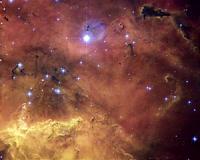 Hubble Snaps Sharp Image Of Cosmic ConcoctionParis, France (ESA) Jul 15, 2010 Strangely shaped dust clouds, resembling spilled liquids, are silhouetted against a colourful background of glowing gas in this newly released Hubble image. The star-forming region NGC 2467 is a vast cloud of gas - mostly hydrogen - that serves as an incubator for new stars. Some of these youthful stars have emerged from the dense clouds where they were born and now shine brightly, hot and ... read more |