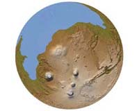 Moffett Field CA (SPX) Apr 28, 2008 The prevailing thinking is that Mars is a planet whose active climate has been confined to the distant past. About 3.5 billion years ago, the Red Planet had extensive flowing water and then fell quiet - deadly quiet. It didn't seem the climate had changed much since. Now, in a research article that graces the May cover of Geology, scientists at Brown University think Mars' climate has been much more dynamic than previously believed. The findings could have important implications in determining whether or not Mars was ever a suitable habitat for life in the planet's past. After examining stunning high-resolution images taken last year by the Mars Reconnaissance Orbiter, the researchers have documented for the first time that ice packs at least 1 kilometer (0.6 miles) thick and perhaps 2.5 kilometers (1.6 miles) thick existed along Mars' mid-latitude belt as recently as 100 million years ago. In addition, the team believes other images tell them that glaciers flowed in localized areas in the last 10 to 100 million years - akin to the day before yesterday in Mars' geological timeline. This evidence of recent activity means the Martian climate may change again and could bolster speculation about whether the Red Planet can, or did, support life. "We've gone from seeing Mars as a dead planet for three-plus billion years to one that has been alive in recent times," said Jay Dickson, a research analyst in the Department of Geological Sciences at Brown and lead author of the Geology paper. "[The finding] has changed our perspective from a planet that has been dry and dead to one that is icy and active." In fact, Dickson and his co-authors, James Head, a planetary geologist and the Louis and Elizabeth Scherck Distinguished Professor at Brown, and David Marchant, an associate professor in the Department of Earth Sciences at Boston University, believe the images show that Mars has gone through multiple Ice Ages - episodes in its recent past in which the planet's mid-latitudes were covered by glaciers that disappeared with changes in the Red Planet's obliquity, which changes the climate by altering the amount of sunlight falling on different areas. Dickson and the other researchers focused on an area called Protonilus Mensae-Coloe Fossae. The region is located in Mars's mid-latitude and is marked by splotches of mesas, massifs and steep-walled valleys that separate the lowlands in the north from the highlands in the south. The team looked in particular at a box canyon set in a low-lying plain. Images show the canyon has moraines - deposits of rocks that mark the limits of a glacier's advance or the path of its retreat. The rock deposit lines appear to show a glacier that flowed up the box canyon, which "physically cannot happen," Dickson said. Instead, the team deduced the ice in the surrounding plain grew higher than the canyon's walls and then flowed downward onto the top of the canyon, which had become the lowest point on the ice-laden terrain. The team calculated the ice pack must have been one kilometer thick by past measurements of height between the plain and the lip of the canyon. Based on the ice flow patterns, the ice pack could have reached 2.5 kilometers at peak thickness during a period known as the late Amazonian, the authors said. The finding could have implications for the life-on-Mars argument by strengthening the case for liquid water. Ice can melt two ways: by temperature or by pressure. As currently understood, the Martian climate is dominated by sublimation, the process by which solid substances are transformed directly to vapor. But ice packs can exert such strong pressure at the base to produce liquid water, which makes the thickness of past glaciers on its surface so intriguing. Dickson also looked at a lobe across the valley from the box canyon site. There, he saw a clear, semi-circular moraine that had spilled from an ancient tributary on to the surrounding plain. The lobe is superimposed on a past ice deposit and appears to be evidence of more recent glaciation. Although geologists can't date either event, the landscape appears to show at least two periods in which glaciation occurred, bolstering their theory that the Martian climate has undergone past Ice Ages. Community Email This Article Comment On This Article Related Links Mars News and Information at MarsDaily.com Lunar Dreams and more
