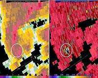 Huntsville AL (SPX) Feb 25, 2008 An unexpected radar image of airborne debris from the Feb. 6 tornado that killed four people in Lawrence County, Ala., might help scientists develop better tools for warning the public when and where strong tornadoes are on the ground. Scientists in the Earth System Science Center at The University of Alabama in Huntsville (UAHuntsville) are studying radar data from the early morning tornado to see if the radar signature from the debris is so distinctive that computers can be programmed to instantly recognize it, so more timely and precise warnings might be issued. "The real advantage would be the precision," said Dr. Walt Petersen, the UAH research scientist leading the radar data analysis. "These events are usually going to be associated with large scale mesocyclones, so tornado warnings would probably already have been issued. But those large scale rotation features can cover several miles. "With this debris signal, we might be able to pinpoint the precise spot where a tornado is on the ground. It would be great to be able to say, 'The tornado is right there, at that town.' If you could automate a system to do that, it would be quite handy and useful." Two of Petersen's UAH graduate students, Chris Schultz and Elise Johnson, used laptop computers to monitor the radar that morning from the safety of their temporary operations center -- the bathroom in Schultz' apartment, "in case we had to dive into the bathtub." Later Schultz suggested to Petersen that there might be a debris signature associated with the Alabama storm. This was the first time a significant tornado has hit within range of the advanced radar unit at the Huntsville International Airport since it was put in service in late 2004. Other storm-related debris sightings using similar radar technology at the National Severe Storms Laboratory in Norman Oklahoma have been rare, so every sighting adds substantially to the paltry information previously available. The Advanced Radar for Meteorological and Operational Research (ARMOR) was developed jointly, with UAHuntsville and a Huntsville television station collaborating to upgrade a decommissioned former National Weather Service Doppler radar unit. ARMOR is a dual polarimetric radar, while most other weather radar units are single polarity. Dual polarization gives ARMOR the ability to gather more data about the size and shape of particles in the air. Initially it was thought the dual polarization capability would help scientists learn more about severe storms, identify hail or snow, and better estimate rainfall. The ability to recognize flying debris wasn't something scientists really expected. "This was totally serendipitous," said Dr. Larry Carey, an ESSC scientist working with Petersen. "Everything else we've done (with ARMOR) were things we pretty much expected. This wasn't really planned. It is just an added benefit of the technology." If computers can be programmed to recognize debris in the radar data, that programming might be a standard feature when the National Weather Service upgrades its existing nationwide NEXRAD radar network to dual polarimetric capabilities beginning in 2009. While the debris feature might not reduce the number of false tornado warnings, it could add a level of urgency and precision to warnings when tornadoes do occur, Petersen said. ARMOR picked up the radar reflection of debris thrown as much as two miles into the air by the tornado. The funnel-shaped plume first shows up on the radar screen above the Pinhook community in Lawrence County, close to the time that the tornado was rated as very intense (EF-3 on the extended Fujita scale). "There's nothing else we can come up with to explain this," Petersen said. "Things match up so well, this is not coincidence. We think our first impressions were correct, that this is indeed a debris signature." In addition to improving warnings, the ARMOR data may provide other insights into how and why tornadoes form when and where they do. Preliminary radar data from the storm, for instance, shows an area of exceptionally heavy rain (at the rate of six to eight inches per hour) falling immediately behind where the tornado appeared. The scientists wonder if vertical air movements associated with rainfall that heavy might contribute to shifting horizontal turbulence in the storm front into vertical rotation. "Also, is it just coincidence that this tornado spun up as it came out of the Bankhead Forest over a slight down slope?" Carey asked. "There are so many factors involved - wind shear and rainfall and topography - it wouldn't surprise me if it takes a concurrence of all of them to spin up a significant tornado." The data analysis and related work are supported by funding secured by U.S. Sen. Richard Shelby for the Tornado and Hurricane Observations and Research Center (THOR) test bed facility at UAHuntsville. Community Email This Article Comment On This Article Related Links University of Alabama Huntsville Weather News at TerraDaily.com