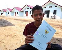 Jakarta (AFP) Dec 14, 2007 Indonesia held a ceremony Friday to hand over the 100,000th rebuilt house in Aceh and Nias, which were devastated by the 2004 Indian Ocean tsunami, an official said. Mirza Keumala, spokesman of the agency overseeing reconstruction in the wake of the deadly tsunami, said the formal affair took place in Teunom village, Aceh Jaya district. He said 138 houses, which included the 100,000th, were symbolically handed over to residents in the village, which was in one of the areas worst hit by the tsunami. The catastrophe claimed 168,000 Indonesian lives. "We wanted to give a morale boost to the people here in rebuilding their district," he told AFP by telephone, adding that people still faced daily challenges here as the infrastructure remained in poor condition. Keumala said that reconstruction of a targeted 120,000 houses was expected to be complete by April 2008, and despite the formal ceremony on Friday, 103,000 have now been finished. Kuntoro Mangkusubroto, head of the Rehabilitation and Reconstruction Agency for Aceh-Nias (BRR), warned in October that the completion of homes did not mean the housing problem was over. Some of the houses rebuilt since then have remained unoccupied or are of poor quality, while others still lack essentials such as drainage or electricity, he said at the time, pledging that the problems would be solved. Community Email This Article Comment On This Article Related Links Bringing Order To A World Of Disasters A world of storm and tempest When the Earth Quakes