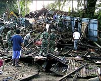 Jakarta (AFP) May 7, 2008 The death toll from a landslide in Indonesia's eastern province of Papua rose to 19 on Wednesday as bad weather forced a halt to the search for survivors, miners involved in the rescue effort said. A spokesman for Freeport Indonesia, which operates a nearby mine, said it was unclear how many people had been buried when a cliff slid down on an illegal mining operation late Monday. "As of this afternoon when we had to halt the search efforts because of the bad weather, a total of 19 bodies had been found," spokesman Mindo Pangaribuan told AFP. Pangaribuan said the victims were all illegal gold panners working on tailings from the Freeport mine but were not inside Freeport's concession area as claimed earlier by police. The landslide took place late on Monday evening in an area about 3,000 metres (9,900 feet) above sea level which is continuously shrouded by mist. Freeport Indonesia, a subsidiary of US mining giant Freeport-McMoRan, said its operations had not been affected by the landslide. Community Email This Article Comment On This Article Related Links Bringing Order To A World Of Disasters A world of storm and tempest When the Earth Quakes
