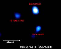 Paris, France (SPX) Feb 22, 2008 ESA's Integral has made the first unambiguous discovery of high-energy X-rays coming from a rare massive star at our cosmic doorstep, Eta Carinae. It is one of the most violent places in the galaxy, producing vast winds of electrically-charged particles colliding at speeds of thousands of kilometres per second. The only astronomical object that emits gamma-rays and is observable by the naked eye, Eta Carinae is monstrously large, so large that astronomers call it a hypergiant. It contains between 100-150 times the mass of the Sun and glows more brightly than four million Suns put together. Astronomers know that it is not a single star, but a binary, with a second massive star orbiting the first. It has long been suspected that such massive binary stars should give off high-energy X-rays, but until now, the instruments required for the observations were lacking. Recently, Integral has conclusively shown that Eta Carinae gives off high-energy X-rays, more or less in agreement with theoretical predictions. "The intensity of the X-rays is a little lower than we expected, but given that this is the first-ever conclusive observation, that's okay," says Jean-Christophe Leyder of the Institut d'Astrophysique et de Geophysique, Universite de Li�ge, Belgium. The high-energy X-rays come from a vast shockwave, set up and maintained between the two massive stars. The shockwave is produced when the two stars' stellar winds collide, creating a system that astronomers term a colliding-wind binary. Massive stars are constantly shedding particles that are 'blown' away into space by the effect of light and other radiation given off by the star. This starlight is so fierce that the stellar winds can reach speeds of 1500-2000 km/s. With two massive stars in close proximity, as they are in the Eta Carinae system, the winds collide and set up fearsome shockwaves where temperatures reach several thousand million degrees Kelvin. "It's a very tough environment," says Leyder. Electrically-charged particles called electrons get caught in the magnetic environment of the shockwaves, bouncing back and forth and being accelerated to huge energies. When they finally burst out of the shockwave, they collide with low-frequency photons and give them more energy, creating the emission that Integral has seen. Understanding this emission is important because astronomers believe that it lies at the heart of many diverse phenomena in the universe. Stellar winds have profound implications on the evolution of stars, the chemical evolution of the universe and as a source of energy in the galaxy. Massive stars are rare, so two in a binary system is even rarer. "In our galaxy, there are probably only 30-50 colliding-wind binaries that display a clear signature of wind-wind collision," says Leyder. A year ago, ESA's XMM-Newton saw X-rays from the colliding wind binary, HD 5980, situated in the neighbouring galaxy, the Small Magellanic Cloud. Integral covers a different, higher energy range in X-rays than that covered by XMM-Newton. This is why it was able to detect the more energetic X-rays emitted by Eta Carinae. Based on observations, scientists have learnt that the Eta Carinae system loses one Earth mass per day, which is roughly 140 times higher than the mass loss rate in HD 5980. To have a rare, massive binary star such as Eta Carinae virtually at our cosmic doorstep at 8000 light-years, close enough to be observable in detail, is a stroke of luck. Now that they know what to look for, astronomers will continue searching for other examples of colliding wind binaries emitting high-energy X-rays further afield. Community Email This Article Comment On This Article Related Links ESA's gamma-ray astronomy mission Stellar Chemistry, The Universe And All Within It