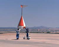 Parachute "We did some analysis that showed there was a three-to-five percent chance, depending on wind conditions, that the lander would have some kind of re-contact with the parachute," said Rob Grover, chief of the Phoenix entry, descent and landing team at JPL. "The worst situation would be to have the parachute come down right on top of the lander and prevent deployment of the solar arrays." Rather than rely on the odds against such an occurrence, engineers designed a maneuver for the lander to avoid the parachute. Horizontal motion identified by the radar while the lander is still connected to the parachute will indicate wind direction and speed. If the wind is strong, the parachute will blow away on its own. If the wind is weak, the lander will use its thrusters after separating from the parachute to push itself upwind, away from the falling parachute.