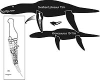 Anchorage AK (SPX) Mar 10, 2008 University of Alaska Museum of the North earth sciences curator Patrick Druckenmiller is among a team of researchers who have excavated the fossil of what may be the largest Jurrasic marine reptile ever found. The Norwegian research team unearthed the 150-million-year-old pliosaur specimen from the remote Norwegian archipelago of Svalbard last summer. At the time, they knew the Jurassic fossil was significant. After months of preparing and conserving the specimen at the Natural History Museum at the University of Oslo, researchers confirmed their earlier suspicions: the fossil is perhaps the largest ever found. A pliosaur is a type of plesiosaur, a group of extinct reptiles that lived in the world's oceans 205-65 million years ago. Pliosaurs are characterized by teardrop-shaped bodies with two pairs of powerful flippers used to propel them through the water. They were top predators during their day, preying upon fish, squid-like animals and other marine reptiles. They averaged 16-20 feet in length with flippers 3-4 feet long. One of the largest known pliosaurs, the Australian Kronosaurus, measures 33-36 feet long with 6-foot-long flippers. By comparison, the Svalbard specimen, nicknamed "The Monster" by the research team, is estimated to be 50 feet long with 10-foot-long flippers. "This is one of the largest and relatively complete plesiosaur specimens ever found," says Druckenmiller, whose research focuses on plesiosaurs. "Its discovery in Svalbard also demonstrates that these gigantic animals inhabited the northern seas during the age of dinosaurs." Led by Norwegian paleontologist J�rn Hurum, the international research team, including Druckenmiller, discovered the specimen in summer 2006. Judging from the fragments they recovered at the time, they knew the find was significant and returned the next year to retrieve more of the specimen. During the three-week field season in summer 2007, the team excavated the specimen from the surrounding shale, removing several tons of rock by hand in the process. Though they didn't find the entire skeleton, they recovered several critical parts used to identify the specimen and compare it to other known plesiosaurs: portions of the skull, including the teeth; much of the neck and back; the shoulder girdle; and a near-complete forelimb. One of the key questions researchers hope to answer is whether this specimen represents a species new to science. In addition to "The Monster" pliosaur specimen, the crew also discovered parts of three other marine reptiles nearby: a long-necked plesiosaur, an ichthyosaur and another pliosaur. Based in part on these discoveries and several others made by the team, scientists now recognize Svalbard as home to one of the richest accumulations of marine reptile fossils in the world. "The scientific value of such a large locality with unknown species of marine reptiles is just staggering," says Hurum. Druckenmiller will join Hurum and the Oslo team on another research expedition to Svalbard in August 2008. Community Email This Article Comment On This Article Related Links University of Alaska Darwin Today At TerraDaily.com
