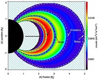 New Transient Radiation Belt Discovered At SaturnPasadena CA (SPX) Sep 15, 2009 Scientist using the Cassini spacecraft's Magnetospheric Imaging instrument (MIMI) have detected a new, temporary radiation belt at Saturn, located around the orbit of its moon Dione at about 377,000 km from the centre of the planet. The discovery will be presented at the European Planetary Science Congress in Potsdam by Dr. Elias Roussos on Monday 14 September. Radiation belts, like ... read more |