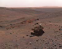 Pasadena CA (JPL) Apr 21, 2009 After three days of completing Earth-commanded activities without incident last week, NASA's Mars Exploration Rover Spirit had a bout of temporary amnesia Friday, April 17, and rebooted its computer Saturday, April 18, behavior similar to events about a week earlier. Engineers operating Spirit are investigating the reboots and the possibly unrelated amnesia events, in which Spirit unexpectedly fails to record data into the type of memory, called flash, where information is preserved even when power is off. Spirit has had three of these amnesia events in the past 10 days, plus one on Jan. 25. No causal link has been determined between the amnesia events and the reboots. The most recent reboot put Spirit back into an autonomous operations mode in which the rover keeps itself healthy. Spirit experienced no problems in this autonomous mode on Sunday. The rover team at NASA's Jet Propulsion Laboratory, Pasadena, Calif., revised plans today for regaining Earth control of Spirit's operations and resuming diagnostic and recovery activities by the rover. "We are proceeding cautiously, but we are encouraged by knowing that Spirit is stable in terms of power and thermal conditions and has been responding to all communication sessions for more than a week now," said JPL's Sharon Laubach, chief of the rover sequencing team, which develops and checks each day's set of commands. During the past week of diagnostic activities, the rover has successfully moved its high- gain dish antenna and its camera mast, part of checking whether any mechanical issues with those components may be related to the reboots, the amnesia events, or the failure to wake up for three consecutive communication sessions two weeks ago. Spirit and its twin rover, Opportunity, completed their original three-month prime missions on Mars in April 2004 and have continued their scientific investigations on opposite sides of the planet through multiple mission extensions. Engineers have found ways to cope with various symptoms of aging on both rovers. The current diagnostic efforts with Spirit are aimed at either recovering undiminished use of the rover or, if some capabilities have been diminished, to determine the best way to keep using the rover. Laubach said, "For example, if we do determine that we can no longer use the flash memory reliably, we could design operations around using the random-access memory." Spirit has 128 megabytes of random-access memory, or RAM, which can store data as long as the rover is kept awake before its next downlink communications session. Share This Article With Planet Earth