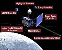 Tokyo (XNA) Oct 22, 2007 Japan's first lunar probe satellite had been successfully put into observation orbit around the moon, the Japan Aerospace Exploration Agency (JAXA) said Friday. According to JAXA's press release issued earlier in the day, the Selenological and Engineering Explorer had finished its task of reducing the maximum distance to the moon and was circling around the moon in an almost rounded orbit. The satellite was currently orbiting in a track of 80 to 123 kilometers around the surface of the moon, the press release said. JAXA officials said the orbit was not the final stable one for the satellite. Its angle and position would be further adjusted in the following days with an aim to direct cameras and all related instruments to point to the moon. The final stable observation orbit of the explorer would be a rounded one with a distance of about 100 kilometers to the surface of the moon, officials said, adding that it has to be waited until Sunday when JAXA could tell whether the final orbit could be realized as scheduled. The satellite, named "Kaguya" after ancient Japanese fable, was lifted off from the Tanegashima Space Center in southern Japan by a H-2A rocket on Sept. 14. It was injected into the lunar orbit on Oct. 4. Consisting of a 3-ton main orbiter and two 50-kilogram sub-satellites, Kaguya is equipped with 14 scientific instruments and a high-definition television camera. Under the 55 billion yen (474 million U.S. dollars) project, Kaguya is to begin its 10-month mission around December, collecting lunar features related with the origin and evolution of the moon.