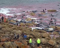 New Zealand rangers put down stranded whalesWellington (AFP) Jan 21, 2011 New Zealand wildlife rangers put down 10 pilot whales stranded in a remote New Zealand bay Friday after reluctantly determining there was no way to save them, conservation officials said. The whales were the surviving members of a pod of 24 found early Friday trapped in mud and mangroves at Parengarenga Harbour, 320 kilometres (200 miles) northwest of Auckland, the Department of Conservation ... read more |