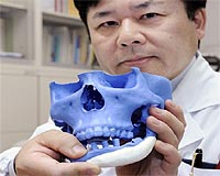 Tokyo (AFP) Nov 23, 2008 Japanese hospitals are running a clinical trial on the world's first custom-made bones which would fit neatly into patients' skulls and eventually give way to real bones. If successful, the Japanese method could open the way for doctors to create new bones within hours of an accident so long as the patient has electronic data on file. Doctors usually mend defective bones by transplanting real bones or ceramic substitutes. The Japanese implants use a powder of calcium phosphate, the substance that makes up real bones. The new implants are called CT Bone as they are crafted using the patient's computer tomography (CT) data, a form of medical imaging. It can match the complicated structures of the jaw, cheek and other parts of the skull down to one millimetre (0.039 of an inch), a level significant enough to make a difference in human faces, researchers told AFP. "It can also be replaced by your own bone, which wasn't possible before" with conventional sintered ceramic bones, said Tsuyoshi Takato, an orthopedic surgeon and professor at the University of Tokyo's Graduate School of Medicine. The implants are currently limited to use in the skull because, unlike limbs, they do not have to carry the body weight. The custom-made bones are created from the calcium phosphate powder and a solidifying liquid which is more than 80 percent distilled water, using computer-assisted design. In the same way that an ink-jet printer propels droplets onto a piece of paper, a device squirts the liquid on a 0.1-millimetre-thick layer of the powder to form a desired shape. The device, which was developed with Tokyo-based firm Next 21, repeats the process and builds up layers that have different shapes. For example, 100 layers create a one-centimetre thick implant. Theoretically, a laboratory in Tokyo could one day use CT data to create a custom-made bone within hours for someone hurt in a car accident halfway across the world. The clinical tests will last for some two years, covering a total of 70 adults at 10 hospitals. Prior to the current project, the University of Tokyo Hospital implanted CT Bone in 10 adults, who showed promising results. The researchers expect to put it into practical use in three to four years. The same technology has been used to make prototypes of industrial products. "But it is the first time in the world to use materials that can and were implanted into the human body," said Chung Ung-il, a University of Tokyo bioengineering professor who is also part of the project. Chung said previous studies showed the implants are replaced with regenerated real bone after one or two years, depending on the extent of the defects. Takato said the host bone serves as "an incubator" that helps replace artificial bone as cells invade the implant in what could be called "in-body tissue engineering". As ceramic implants are brittle, surgeons often have to scrape the patient's host bone instead to help conventional implants fit better, Takato said. Doctors also often take bone from elsewhere in the body, particularly the hip, for conventional transplants. "Nearly half of it is often wasted in the process of making an implant that fits. It is very good to be able to reconstruct bone without taking a piece from elsewhere," Takato said. Takato hopes to use CT Bone for children if the clinical tests go well. "Even if I want to treat their skeletal damage or development abnormality, I can't take bone from children for grafts. This technology should benefit children," Takato said. Children usually have excellent bone growth. "Implants would be quickly replaced with their own bone, which would grow as the child grows," he said. The technology also has narrow holes running through the artificial bones, inviting blood vessels and cells to come and help regenerate bone. The research team is also working on a second-generation CT Bone, which contains materials that facilitate bridging between the artificial and real bone. Experiments with implanting it in the skulls of Beagle dogs are underway with good results, he said. The ultimate goal is to be able to construct bone from the living cells of patients, allowing them to take in larger pieces. Share This Article With Planet Earth