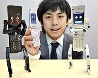 Tokyo (AFP) Feb 28, 2008 For those who feel a bit lonely just talking on the phone, a Japanese company is offering a cellphone that turns into a robot buddy ready to chat. Softbank Mobile Corp.'s new mobile line looks like a small humanoid with attachable arms and legs, with the screen showing various faces. The PhoneBraver will be released in April after a character in an upcoming television drama series entitled "Cellphone Investigator 7." The telephone comes with enough artificial intelligence to learn the user's habits. If the user calls a particular person many times, a text phrase such as "You're calling her often these days, aren't you?" might appear coming out of the face's mouth, according to Softbank Mobile spokesman Katsuhide Furuya. The user could carry on conversations with the phone by responding "yes" or "no" or with other simple replies. "We haven't decided on specifics yet on the communication between the user and mobile, but your mobile would grow into a buddy different from others that is unique in the world," he said. The PhoneBraver does not move by itself but can strike a pose with movable joints. The price is not disclosed yet. Japan is known for its fondness for humanoids, which have been put to use as security guards, receptionists and for other functions in a country with a declining birth rate. Japan also has cutthroat competition in mobile telephones, with three main companies constantly trying to find new incentives to snare users. The number of cellphone subscriptions topped 100 million in Japan at the end of December against the nation's total population of 127 million, according to industry data. Community Email This Article Comment On This Article Related Links All about the robots on Earth and beyond!