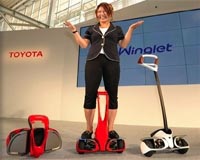 Tokyo (AFP) Aug 1, 2008 Japan's Toyota Motor on Friday unveiled the Winglet -- a new two-wheel electric scooter to rival the Segway. The Winglet, which the automaker describes as "a personal transport assistance robot", can be controlled by shifting body weight, allowing the rider to go forward, backward and turn while standing upright. It cruises at a speed of up to six kilometres (four miles) per hour and comes in three sizes. Toyota plans to start practical tests of Winglet later this year at an airport in central Nagoya city and a shopping mall in Yokohama, west of Tokyo, in 2009, the company said. Community Email This Article Comment On This Article Related Links Powering The World in the 21st Century at Energy-Daily.com