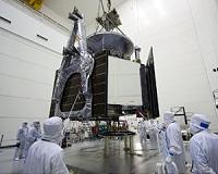 NASA's Juno spacecraft completed its last significant terrestrial journey, July 27, with a 15-mile (25-kilometer) trip from Astrotech Space Operations in Titusville, Fla., to its launch pad at the Cape Canaveral Air Force Station. The solar-powered, Jupiter-bound spacecraft was secured into place on top of its rocket at 10:42 a.m. EDT (7:42 a.m. PDT). Juno will arrive at Jupiter in July 2016 and orbit its poles 33 times to learn more about the gas giant's interior, atmosphere and aurora. "We're about to start our journey to Jupiter to unlock the secrets of the early solar system," said Scott Bolton, the mission's principal investigator from the Southwest Research Institute in San Antonio. "After eight years of development, the spacecraft is ready for its important mission." Now that the Juno payload is atop the most powerful Atlas rocket ever made - the United Launch Alliance Atlas V 551 - a final flurry of checks and tests can begin and confirm that all is go for launch. The final series of checks begins Wednesday with an on-pad functional test. The test is designed to confirm that the spacecraft is healthy after the fueling, encapsulation and transport operations. "The on-pad functional test is the first of seven tests and reviews that Juno and its flight team will undergo during the spacecraft's last 10 days on Earth," said Jan Chodas, Juno's project manager at NASA's Jet Propulsion Laboratory in Pasadena, Calif. "There are a number of remaining pre-launch activities that we still need to focus on, but the team is really excited that the final days of preparation, which we've been anticipating for years, are finally here. We are ready to go." The launch period for Juno opens Aug. 5, 2011, and extends through Aug. 26. For an Aug. 5 liftoff, the launch window opens at 11:34 a.m. EDT (8:34 a.m. PDT) and remains open through 12:43 p.m. EDT (9:43 a.m. PDT).