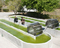 Manhattan KS (SPX) Nov 04, 2009 Two Kansas State University engineers are assessing systematic production methods that could make the costs of algae oil production more reasonable, helping move the U.S. from fossil fuel dependency to renewable energy replacements. The idea by K-State's Wenqiao "Wayne" Yuan and Zhijian "Z.J." Pei is to grow algae in the ocean on very large, supporting platforms. The National Science Foundation awarded them a $98,560 Small Grant for Exploratory Research in 2009 for their work. Compared to soybeans that produce 50 gallons of oil an acre a year, some algae can average 6,000 gallons - but it's not cheap to produce. Current algae growing methods use ponds and bioreactor columns, and algae float around suspended in water. Harvesting such a moving target systematically requires using very costly inputs like centrifuges and electricity. Even with these best technologies for algae growth and production, the end product biodiesel is expensive at about $56 a gallon. Yuan, assistant professor of biological and agricultural engineering at K-State, thinks it will be five to 10 years scientists before understand the fundamentals of large-scale algae production sufficiently that cost can be reduced to the target of about $5 a gallon. "It will take that much time to really understand the fundamentals of large-scale algae production and to establish pilot projects," he said. Both Yuan and Pei, professor of industrial and manufacturing systems engineering at K-State, think food production land should not be used to produce algae for fuel. The two are studying the feasibility of large-scale algae production in the ocean and how to engineer the production systems. Pei and Yuan are working to identify oil-rich algae species that are inclined to settle down and grow en masse on a solid surface, a characteristic that will make algae production manageable and harvesting much simpler. "We think there is tremendous potential for algae oil production if we grow it on big platforms and incorporate the ocean into the system," Yuan said. Half the cost of growing algae is in providing a steady supply of food and water, the growth medium. Ocean water offers those in abundance, he said. The researchers are currently addressing several broad questions: By what mechanisms do algae attach to various surfaces, what materials do algae prefer, and what surface textures, if any, encourage the algae to bloom and grow? Pei said the research team has achieved some exciting results. In studies of two species of algae characteristically high in oil content and fast growing, both species attached very well to a stainless steel, thin film surface that was slightly dimpled. Furthermore, once the algae attach, they grow very well, producing a green clump several millimeters thick. "Just like geckoes cannot walk on a perfectly smooth surface, our results indicate that the algae attach better on a slightly textured surface," Yuan said. Stainless steel was chosen because it is easy to machine or texture, durable and reasonably cheap. A colleague at Northwestern University produced the dimpled samples used in the study. "We are doing very fundamental research now," Yuan said. "We need to understand the algae attachment mechanism before we can select species more likely to attach to a solid support." Pei and Yuan think large-scale algae production done on very large support surfaces in ocean water is quite feasible. They are imagining a long, continuously rolling surface like a conveyer belt. "Right now, we really are thinking in terms of a large-scale biological and mechanical production system," Yuan said. As Yuan describes the system, the algae would grow on the thin-film surface submerged under the ocean. At some point, the growth surface rolls up into the sunlight and the algae dries. A harvesting knife at the end of the conveyer system scrapes off dried algae, at which point the surface submerges to become home to the next growth of oil-rich algal material. In August, Yuan and Pei and associates presented results of the surface studies at the 59th general assembly of CIRP, the International Academy for Production Engineering, in Boston. The academy is the only global organization representing the latest research and development activities in the area of production engineering. Their presentation was "Effect of Surface Texture on Algae Growth." Co-authors with Pei and Yuan are Yan Cui, K-State graduate student in biological and agricultural engineering; and Northwestern University colleagues Jian Cao and Michael Beltran, professors, and Tiffany Davis, a graduate student. The Journal of Manufacturing Science and Engineering, a CIRP publication, has accepted their paper, "Feasibility Study of a Mechanical-Biological Energy Manufacturing System," for publication. Share This Article With Planet Earth