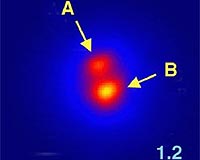 Mauna Kea HI (SPX) Oct 06, 2008 A team of University of Hawaii, California Institute of Technology (Caltech) and MIT astronomers using one of the Keck telescopes on Mauna Kea has found evidence for cloudy weather on failed stars. The star in question, 2M1404B, has a mass of about 3 percent of the mass of our sun and lives with its slightly more massive sibling, 2M1404A, 75 light-years away in the constellation of Centaurus. While 2M1404A is socked in by thick clouds, the cloud layer in 2M1404B seems to be breaking up into patches. Both failed stars are "brown dwarfs," objects whose mass is between that of large gaseous planets, such as Jupiter, and ordinary stars. These are not normal stars because they are not massive enough to fuse hydrogen, so they cool and fade as they become older. Normally, the more massive a star or brown dwarf is, the more radiation it emits, so the team was surprised to find that 2M1404B emits 60 percent more near-infrared radiation than its higher-mass sibling. "While smaller discrepancies have been seen in three other brown dwarf pairs, the size of this anomaly is most easily explained by clouds breaking up," said Ms. Dagny Looper, a UH graduate student and lead author of the study, which has been published in the October 1 issue of the Astrophysical Journal. After a stable childhood during which it exhausts its deuterium (heavy hydrogen) fuel, a brown dwarf steadily cools down until materials such as enstatite (a common mineral) and iron condense to form thick globe-covering clouds. Like smog on Earth, the dust absorbs light, causing a brown dwarf to appear dimmer in the near infrared (at a wavelength of 1.2 micrometers) than it would without the clouds. But when brown dwarfs cool down even further, to temperatures comparable to those observed in 2M1404B (about 1700 degrees F or 900 C) , the clouds suddenly disappear. The resulting clear skies cause the brown dwarf to appear brighter at certain wavelengths. "The process by which the clouds suddenly disappear is still unknown," said team member Dr. Adam Burgasser, an assistant professor at MIT. "But similar brightenings have been seen in clear patches in Jupiter's cloud decks. There appears to be an interesting connection between the clouds on planets and the clouds on brown dwarfs." "Like many other brown dwarf binaries, the separation in the sky between the two components is very small," commented team member Dr. Chris Gelino, an astronomer at the Spitzer Science Center at Caltech. "Without the help of adaptive optics systems on large telescopes to lessen the blurring effect from Earth's atmosphere, most of these binaries would go unnoticed, appearing as one fuzzy blob. The adaptive optics system on Keck II is playing a crucial role in our understanding of brown dwarf physics, especially with discoveries like this one." The twin 33-foot (10-meter) Keck telescopes are the largest optical and near-infrared telescopes in the world. The team used Keck II, which is equipped with an adaptive optics system that uses a laser to create an artificial star by exciting sodium atoms 55 miles (90 km) high, in Earth's mesosphere. Turbulence in Earth's atmosphere distorts the images of both real stars and the artificial star. The amount of distortion for the artificial star is measured several hundred times a second and sent to a flexible mirror that changes its shape to cancel out the effects of the turbulence in the real star. This provides astronomers with clear, sharp images down to a limit of about 0.04 seconds of arc, or the diameter of a US quarter seen at a distance of 78 miles (126 km). This new binary has a separation of only three times this limit. Its physical separation is estimated to be four astronomical units, or four times the distance between Earth and the sun. Community Email This Article Comment On This Article Related Links University of Hawaii Stellar Chemistry, The Universe And All Within It