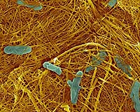Minneapolis MN (SPX) Mar 05, 2008 Researchers at the University of Minnesota studying bacteria capable of generating electricity have discovered that riboflavin (commonly known as vitamin B-2) is responsible for much of the energy produced by these organisms. The bacteria, Shewanella, are commonly found in water and soil and are of interest because they can convert simple organic compounds (such as lactic acid) into electricity, according to Daniel Bond and Jeffrey Gralnick, of the University of Minnesota's BioTechnology Institute and department of microbiology, who led the research effort. "This is very exciting because it solves a fundamental biological puzzle," Bond said. "Scientists have known for years that Shewanella produce electricity. Now we know how they do it." The discovery means Shewanella can produce more power simply by increased riboflavin levels. Also, the finding opens up multiple possibilities for innovations in renewable energy and environmental clean-up. The research is published in the March 3 issue of the Proceedings of the National Academy of Sciences. The interdisciplinary research team, which included several students, showed that bacteria growing on electrodes naturally produced riboflavin. Because riboflavin was able to carry electrons from the living cells to the electrodes, rates of electricity production increased by 370 percent as riboflavin accumulated. Scaled-up "microbial fuel cells" using similar bacteria could generate enough electricity to clean up wastewater or power remote sensors on the ocean floor. "Bacteria could help pay the bills for a wastewater treatment plant," Bond said. But more ambitious applications, such as electricity for transportation, homes or businesses, will require significant advances in biology and in the cost-effectiveness of fuel cell materials. Why do these bacteria produce electricity? In nature, bacteria such as Shewanella need to access and dissolve metals such as iron. Having the ability to direct electrons to metals allows them to change their chemistry and availability. "Bacteria have been changing the chemistry of the environment for billions of years," said Gralnick. "Their ability to make iron soluble is key to metal cycling in the environment and essential to most life on earth." The process could be reversed to prevent corrosion of iron and other metals on ships. Bond and Gralnick were each recently awarded funding from the U.S. Navy to explore this and other potential applications. This research was funded by the Initiative for Renewable Energy and the Environment, the National Science Foundation, the National Institutes of Health and Cargill. Community Email This Article Comment On This Article Related Links University of Minnesota Powering The World in the 21st Century at Energy-Daily.com