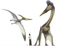 Baltimore MD (SPX) Jan 14, 2009 Pterosaurs have long suffered an identity crisis. Pop culture heedlessly - and wrongly - lumps these extinct flying lizards in with dinosaurs. Even paleontologists assumed that because the creatures flew, they were birdlike in many ways, such as using only two legs to take flight. Now comes what is believed to be first-time evidence that launching some 500 pounds of reptilian heft into flight required pterosaurs to use four limbs: two were ultra-strong wings which, when folded and balanced on a knuckle, served as front "legs" that helped the creature to walk - and leap. Publishing in Zitteliana, Michael B. Habib, M.S., of the Center for Functional Anatomy and Evolution at the Johns Hopkins University School of Medicine, reports his comparison of bone strength in the limbs of pterosaurs to that of birds and concludes that pterosaurs had much stronger "arms" than legs. The reverse is true of birds. "We've all seen birds take off, so that's what's most familiar," says Habib. "But with pterosaurs, extinct 65 million years and with a fossil history that goes back 250 million years, what's familiar isn't relevant." A supersized glitch is inherent in the traditional bipedal launch model, Habib notes: "If a creature takes off like a bird, it should only be able to get as big as the biggest bird." Birds use legs to launch, wings to flap. They don't get launch power from wings or flight power from legs. In fact, when a bird is aloft, its legs become payload, or cargo. The muscle on the two back limbs that provides the power to launch must be carried and therefore limits size. Released of that handicap by employing all four legs to launch, giant pterosaurs could fly despite the fact that they were roughly the same size and shape as modern-day giraffes. "The difference between pterosaurs and birds with regard to critical mechanical properties is very, very large," Habib says, especially when you're talking about the big pterosaurs; as the size gets bigger, the difference gets bigger too." For example, the wings of these fantastic hairy reptiles, most notably those of Quetzalcoatlus northropi, which spanned to an impressive 35 feet when the creatures were aloft, propelled the creatures into the air during take-offs that Habib describes as leap-frogging long-jumps: "Pterosaurs had long, huge front limbs, so no partner was required. Then, with wings snapping out, off they'd fly." Using computer scans to obtain cross-sectional images and geometric data for 155 bird specimens representing 20 species, Habib calculated the strengths of bones in bird limbs and compared these to three species of pterosaurs, the bones strengths of which he calculated using measurements from previously published sources. Structural strength, taking into account length and diameter, among other things, is a measure of how much force a bone can take before it fractures. Habib also spent time crunching the numbers using the old, bipedal launch model and simply couldn't find a mathematical solution that would enable the largest of the pterosaurs - using hind legs alone - to launch at all. "But using all four legs, it takes less than a second to get off of flat ground, no wind, no cliffs," he said. "This was a good thing to be able to do if you lived in the late Cretaceous period and there were hungry tyrannosaurs wandering around." It stands to reason that a large-bodied animal needing to produce lots of power at take-off would use four legs instead of two, Habib says: "We put V8 engines in our biggest, heaviest cars, not V-4s, like the one in my Camry." Assumption and convention - rather than reason or data - held sway for centuries, ever since the classical bipedal model of pterosaur take-off was first championed, he notes. The research was funded by the Jurassic Foundation. Habib, of Johns Hopkins, is the sole author of the paper. A modern-day man and giraffe, drawn to scale, flank the extinct pterosaur known as Hatzegotpteryx. Unlike birds, pterosaurs used four legs to launch themselves into flight, according to new research. Illustration by Mark Witton. Share This Article With Planet Earth
