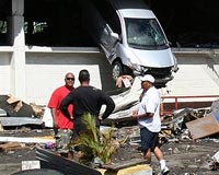 Pago Pago, American Samoa (AFP) Oct 1, 2009 Looters roamed almost unimpeded through the devastated streets of the capital of American Samoa on Wednesday as police searched for bodies following a killer tsunami. At least 31 people were killed in American Samoa after an 8.0 magnitude earthquake triggered waves which pounded into American Samoa, Samoa and Tonga causing widespread destruction. The regional death toll was at least 148 and was expected to rise as survivors and authorities account for the many missing in nearby Samoa. "We had 27 deaths confirmed this morning and now we have 31 and we still have people out on search and rescue missions," homeland security spokeswoman Betty Ahsoon told AFP in American Samoa. A further 2,500 people were being housed in relief shelters. Pago Pago, the heart of American Samoa, bore the brunt of the tsunami with most shops and groundfloor businesses destroyed, and looters were taking advantage of the chaos, she said. "Looting is a problem as a lot of stores and merchants have been destroyed. We have limited people to police the area as our first responders, including the police, are out assisting people affected." Fili Sagapolutele, the Radio New Zealand correspondent in American Samoa, was appalled by the looting she saw. "I also witnessed looting in one of the stores and that is a very terrible thing to happen at this time." Aufage Fausia, a journalist on the local Samoa News paper, told AFP about 90 percent of the shops in Pago Pago were damaged. The looters were targetting liquor and cigarettes and other items they could on-sell but Fausia said the people he saw "were mainly taking food, frozen chickens and things like that." With limited security personnel available to police the town the health department attempted to curb the situation by warning that eating defrosted food taken from broken refrigerators could be hazardous. Ahsoon said the priority of emergency personnel, in addition to recovering bodies and searching for survivors, was to restore supplies of clean drinking water and electricity to the eastern districts. Fausia said they had been warned it could take three weeks before electricity connections are fully restored. A relief flight arrived in Pago Pago early Wednesday and emergency supplies and personnel were immediately dispatched to the worst-hit areas. The aircraft was also reported to be carrying temporary morgue facilities as the main hospital had run out of space. US President Barack Obama on Wednesday declared a major disaster in the remote US outpost, offered his personal sympathies, and promised a "swift and aggressive" government response. The US Federal Emergency Management Agency (FEMA) earlier said it was dispatching two disaster recovery teams to affected areas to assess the extent of the damage.