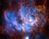 Boston MA (SPX) Jan 28, 2009A new study unveils NGC 604, the largest region of star formation in the nearby galaxy M33, in its first deep, high-resolution view in X- rays. This composite image from Chandra X-ray Observatory data (colored blue), combined with optical light data from the Hubble Space Telescope (red and green), shows a divided neighborhood where some 200 hot, young, massive stars reside. |