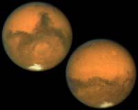Houston TX (SPX) Nov 22, 2007 Mars was covered in an ocean of molten rock for about 100 million years after the planet formed, researchers from the Lunar and Planetary Institute in Houston, Texas, UC Davis, and NASA's Johnson Space Center have found. The work is published in the journal Nature on Nov. 22. The formation of the solar system can be dated quite accurately to 4,567,000,000 years ago, said Qing-Zhu Yin, assistant professor of geology at UC Davis and an author on the paper. Mars' metallic core formed a few million years after that. Previous estimates for how long the surface remained molten ranged from thousands of years to several hundred million years. The persistence of a magma ocean on Mars for 100 million years is "surprisingly long," Yin said. It implies that at the time, Mars must have had a thick enough atmosphere to insulate the planet and slow down cooling, he said. Vinciane Debraille, a postdoctoral researcher at the Lunar and Planetary Institute, Alan Brandon at the Johnson Space Center, Yin and UC Davis graduate student Benjamin Jacobsen inferred the early history of Mars in the distant past by studying meteorites that fell on Earth. Meteorites called shergottites document volcanic activities in Mars between 470 million and 165 million years ago. These rocks were later thrown out of Mars' gravity field by asteroid impacts and delivered to Earth -- a free "sample return mission" accomplished by nature. By precisely measuring the ratios of different isotopes of neodymium and samarium, the researchers could measure the age of the meteorites, and then use them to work out what the crust of Mars was like billions of years before that. Planets form in three stages, Yin said. First, dust collects into objects tens of miles across. In the second phase, gravity pulls these planetisimals into bigger objects, roughly the size of Mars or the moon. Finally, these small planets collide to form three or four larger terrestrial planets, such as the Earth -- which is about 10 times the mass of Mars. The giant collisions in this final phase would have released huge amounts of energy with nowhere to go except back into the new planet. The rock would have turned to molten magma and heavy metals sank to the core of the planet, releasing additional energy. The molten silicate mantle eventually cooled to form a solid crust on the surface of Mars. Community Email This Article Comment On This Article Related Links UC Davis Mars News and Information at MarsDaily.com Lunar Dreams and more