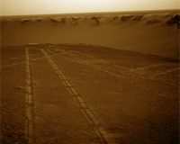Pasadena CA (JPL) Jul 17, 2007Due to extensive dust storms in Mars' southern hemisphere causing record atmospheric opacity levels, Opportunity is currently experiencing its lowest power levels to date. The tau measurement as of sol 1225 is 4.12, resulting in a mere 280 watt-hours of array energy. A tau measurement of 5.0 would result in approximately 150 watt-hours. If tau begins to approach 5.0, the team will have to begin deleting communications windows in order to conserve energy and keep from draining the batteries. |