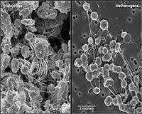 York, UK (SPX) Dec 11, 2007 Microbes could provide a clean, renewable energy source and use up carbon dioxide in the process, suggested Dr James Chong at a Science Media Centre press briefing today. "Methanogens are microbes called archaea that are similar to bacteria. They are responsible for the vast majority of methane produced on earth by living things" says Dr Chong from York University. "They use carbon dioxide to make methane, the major flammable component of natural gas. So methanogens could be used to make a renewable, carbon neutral gas substitute." Methanogens produce about one billion tonnes of methane every year. They thrive in oxygen-free environments like the guts of cows and sheep, humans and even termites. They live in swamps, bogs and lakes. "Increased human activity causes methane emissions to rise because methanogens grow well in rice paddies, sewage processing plants and landfill sites, which are all made by humans." Methanogens could feed on waste from farms, food and even our homes to make biogas. This is done in Europe, but very little in the UK. The government is now looking at microbes as a source of fuel and as a way to tackle food waste in particular. Methane is a greenhouse gas that is 23 times more effective at trapping heat than carbon dioxide. "By using methane produced by bacteria as a fuel source, we can reduce the amount released into the atmosphere and use up some carbon dioxide in the process!" Community Email This Article Comment On This Article Related Links Society for General Microbiology Powering The World in the 21st Century at Energy-Daily.com